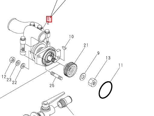 Sjøvannspumpe, ferdig montert med impeller.