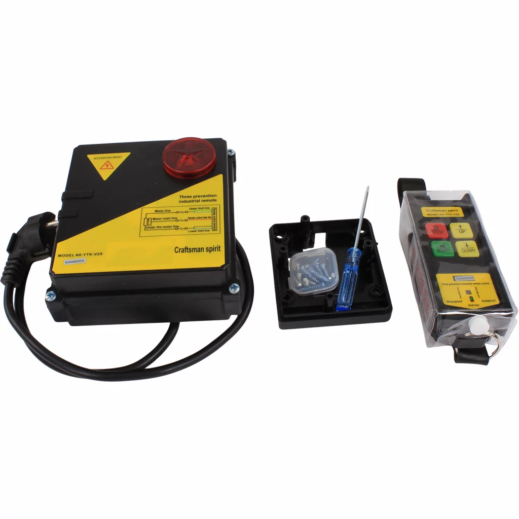 Komplett fjernkontroll og styringsenhet til 220V vinsj med produktnummer 1028628 og 1028629.