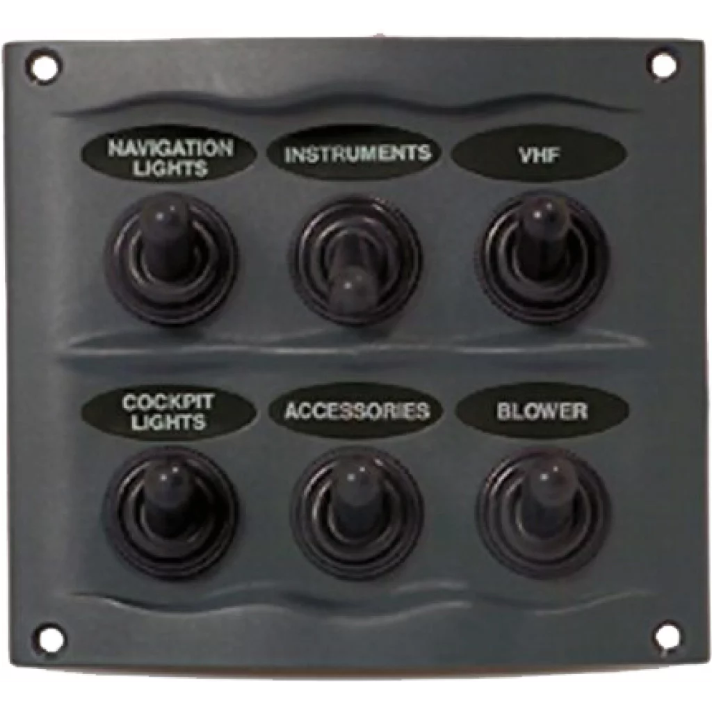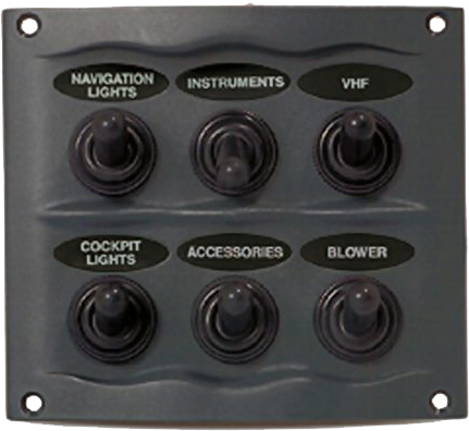 Sprutsikkert (IP=56) og kompakt bryterpanel med vippebrytere. Meget høy kvalitet fra BEP. 6 brytere. 16 A.