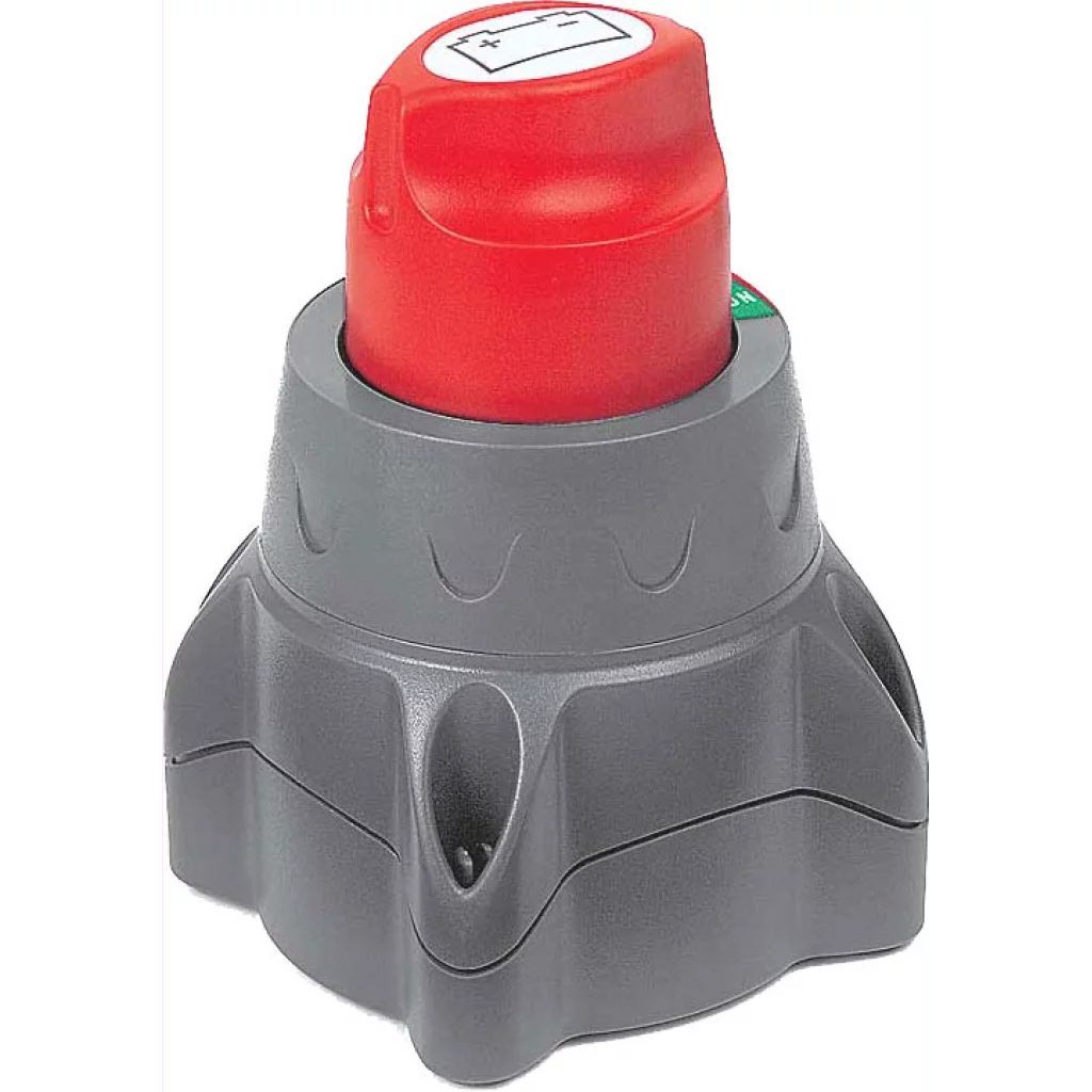 Hovedstrømsbryter fra BEP av meget høy kvalitet. 275 A konstant. 1250 A/15 sekunder. For toppmontering eller “skjult” montering. Hull Ø 25 bores, så monteres bryteren fra baksiden, slik at kun låseskiven og nøkkelbryteren som blir synlig. Meget pen løsning. Nøkkel kan fjernes. Denne passer til boks for hovedstrømsbryter 1015712. IP=67. Max = 48V DC.