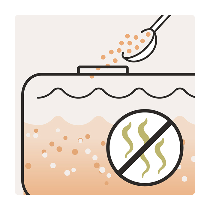 - Tilsett 5 tabletter per 20-liters septiktank sammen med 2–3 liter vann.