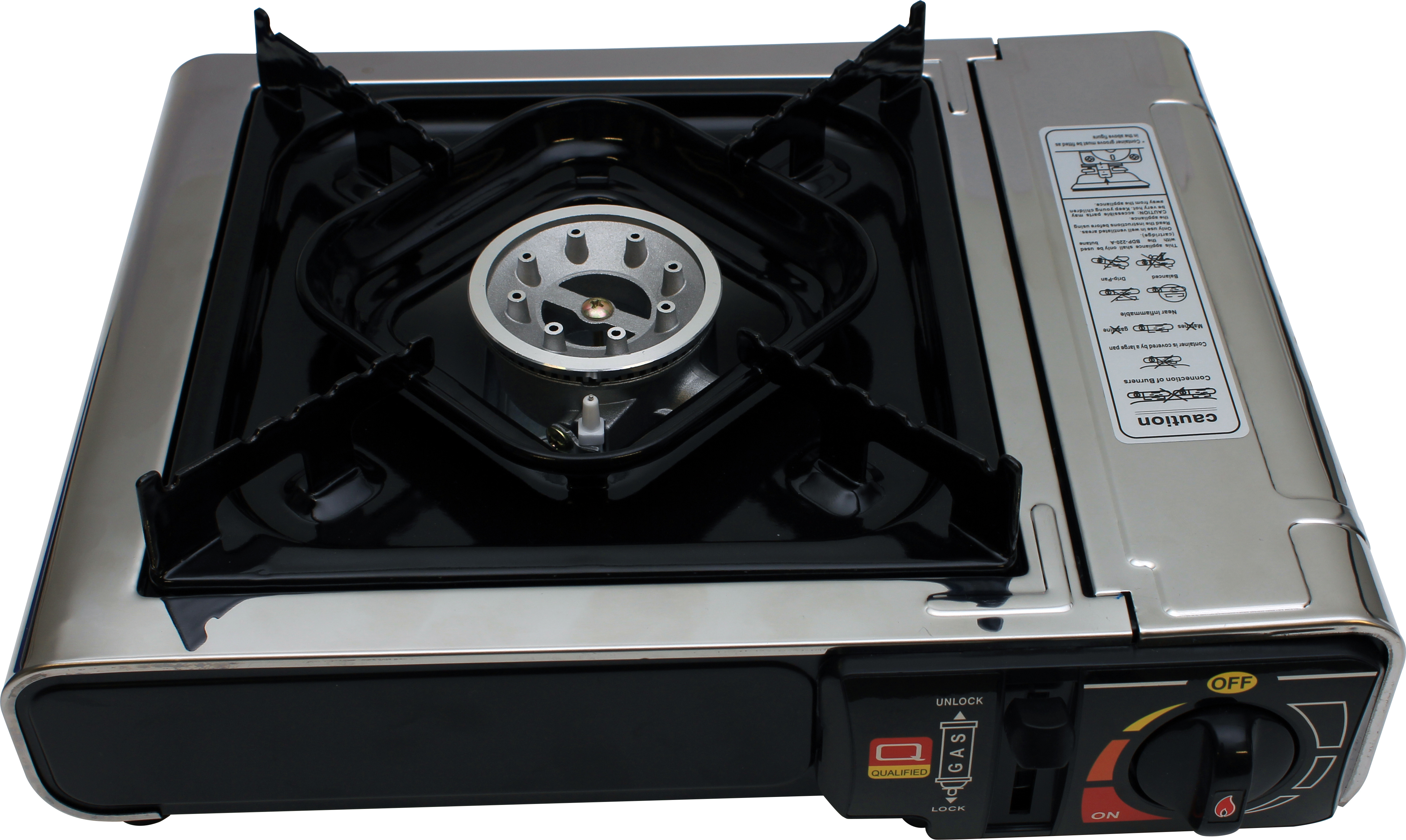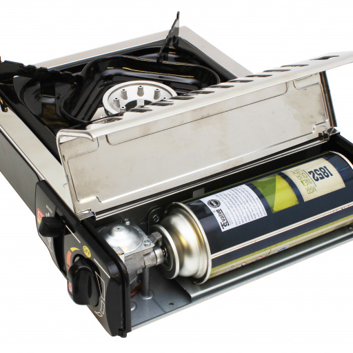 Lite og kompakt kokeapparat med plass til én gryte eller stekepanne. Brenneren har en stor flammespreder, som fordeler varmen godt, og sørger for jevn steking. Den høye effekten på hele 2500 watt gjør at vannet koker svært raskt, og at du kan oppnå perfekt stekeskorpe på biffene. Trinnløs flammeregulering sørger riktig temperatur. Kjelestøttene har gode riller som holder grytene trygt i posisjon.
