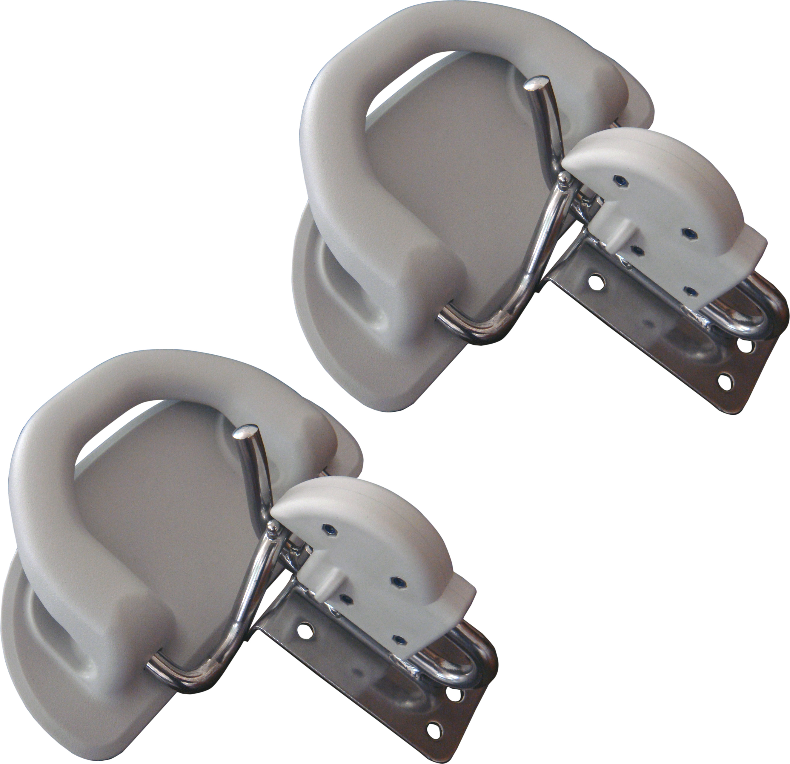 Snap-Davit med håndtak. Monteres horisontalt på badeplattform. Komplett sett bestående av 2 plattformdeler og 2 puter m/bøyle. Alt metall er av syrefast stål.