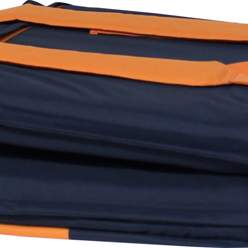 - Farge: Marineblå med orange reimer