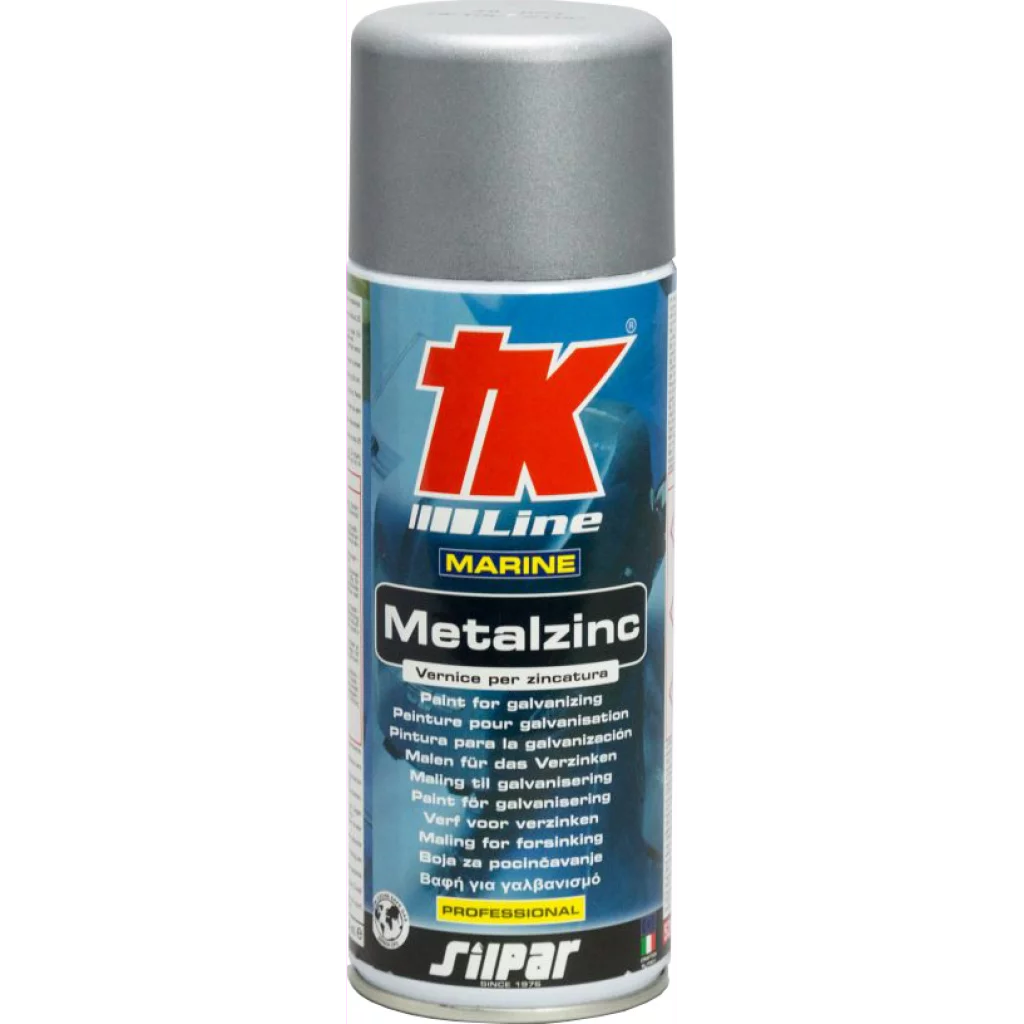 Galvaniserende spray fra TK Line. Dette produktet utfører en ekte kaldgalvaniseringsprosess som gir den behandlede overflaten et beskyttende belegg. Galvaniseringssprayen kan påføres uten noe spesielt utstyr. Etter behandling er det alltid mulig å legge på nye lag med lakk eller maling.