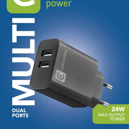 - Cellularline USB-A lader 220V m/2 porter 12W + 12W