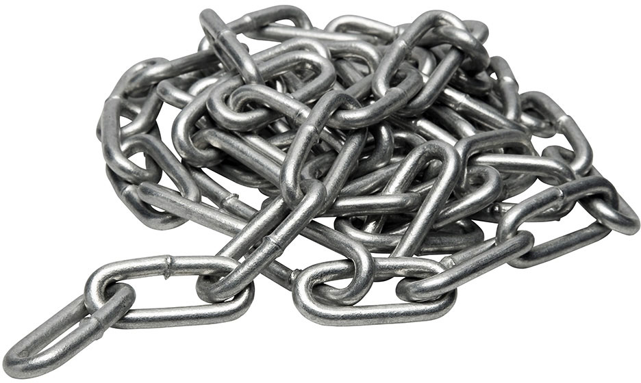 Kraftig varmgalvanisert langlenket kjetting i galvanisert stål for moring av brygger og annet tungt materiell. DIN 763.