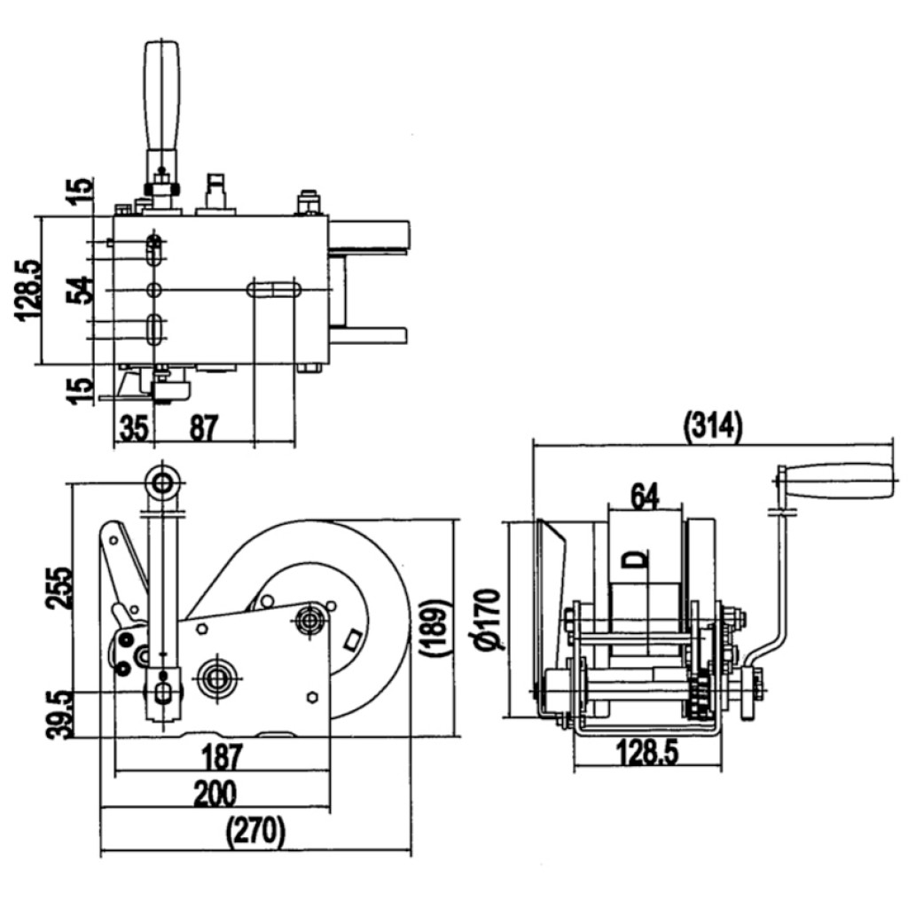 - Rock Tilhengervinsj manuell brems 1140 kg
