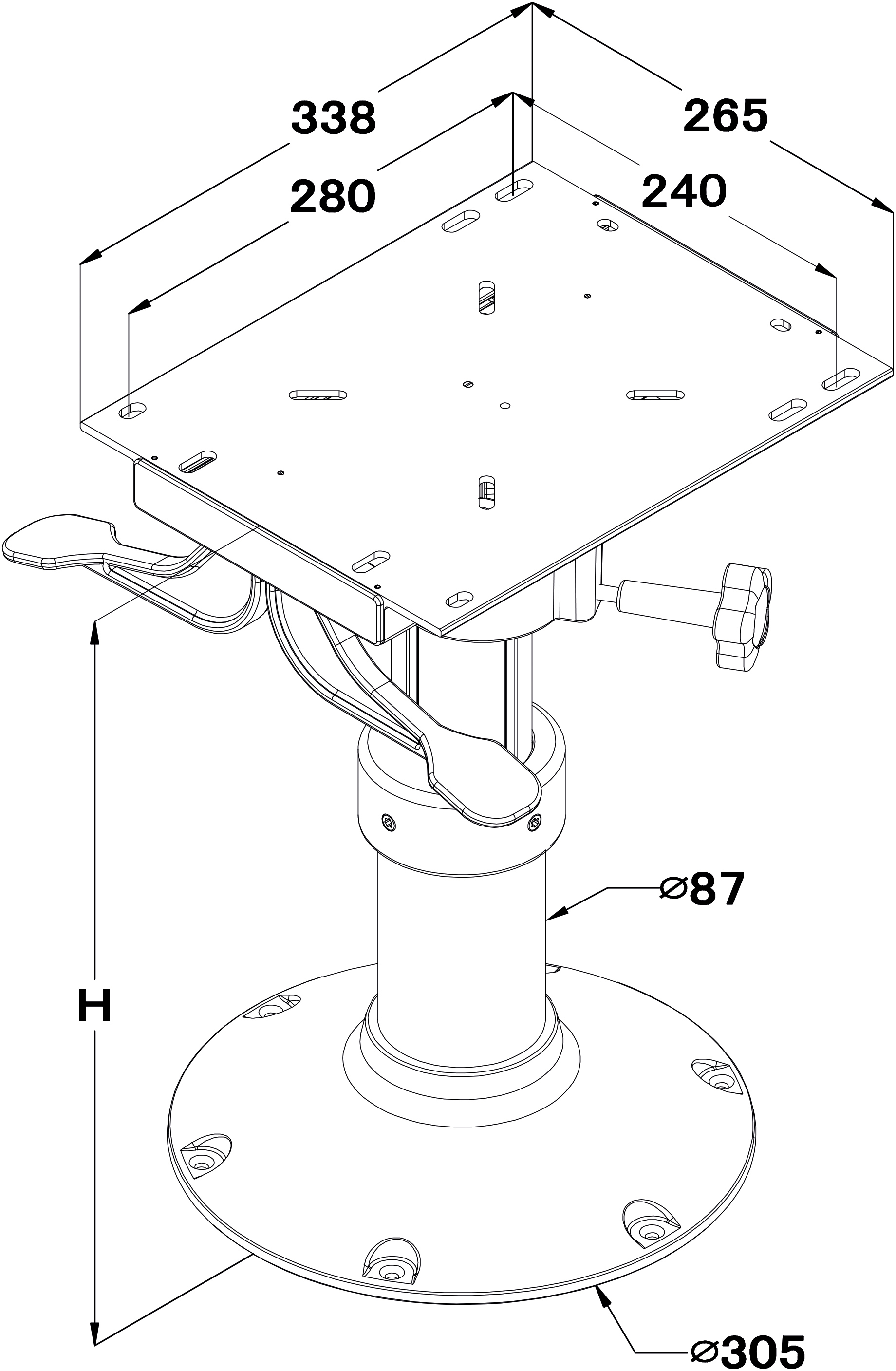 - Stolsøyle SHD "wide slide" 430-610 mm