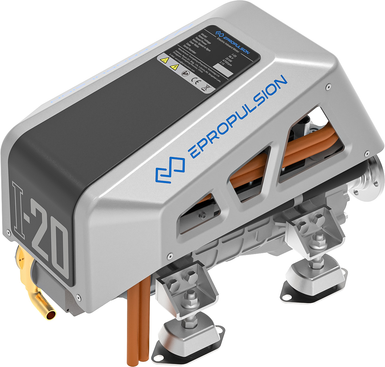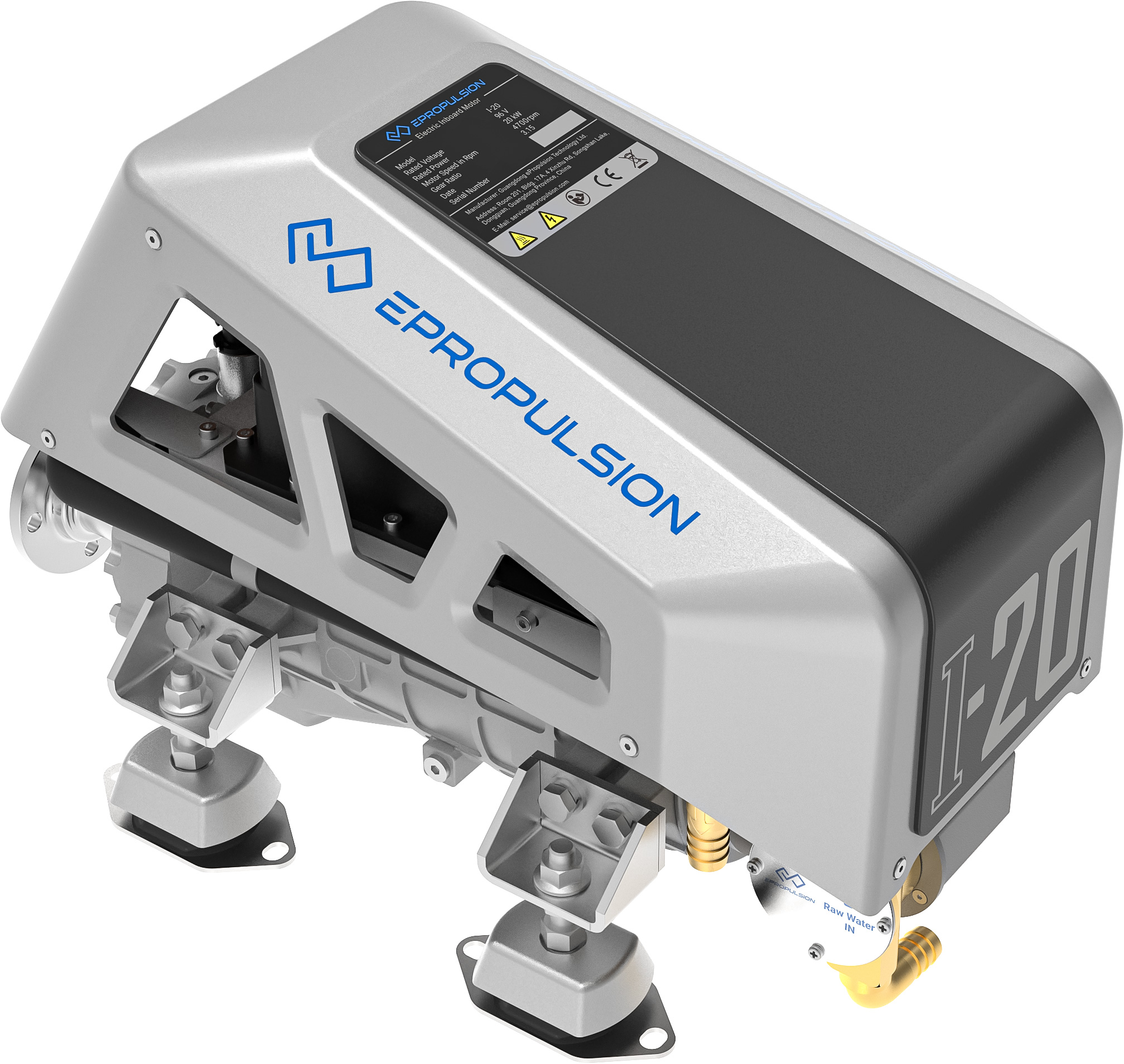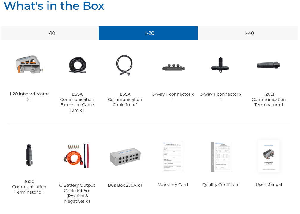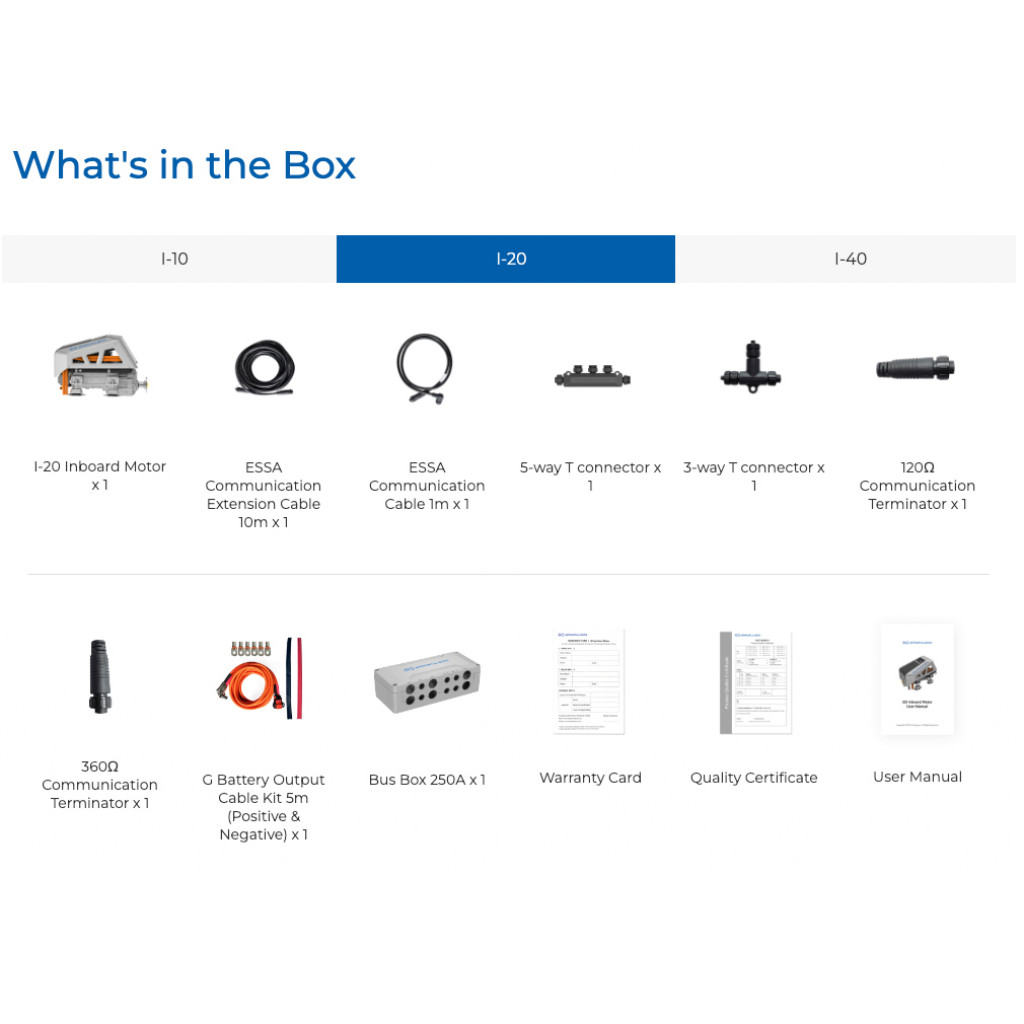 Elektrisk innenbordsmotor fra premiumprodusenten ePropulsion. I-20 er en kompakt og stillegående båtmotor på 20 kW. Den kan erstatte en tradisjonell forbrenningsmotor.