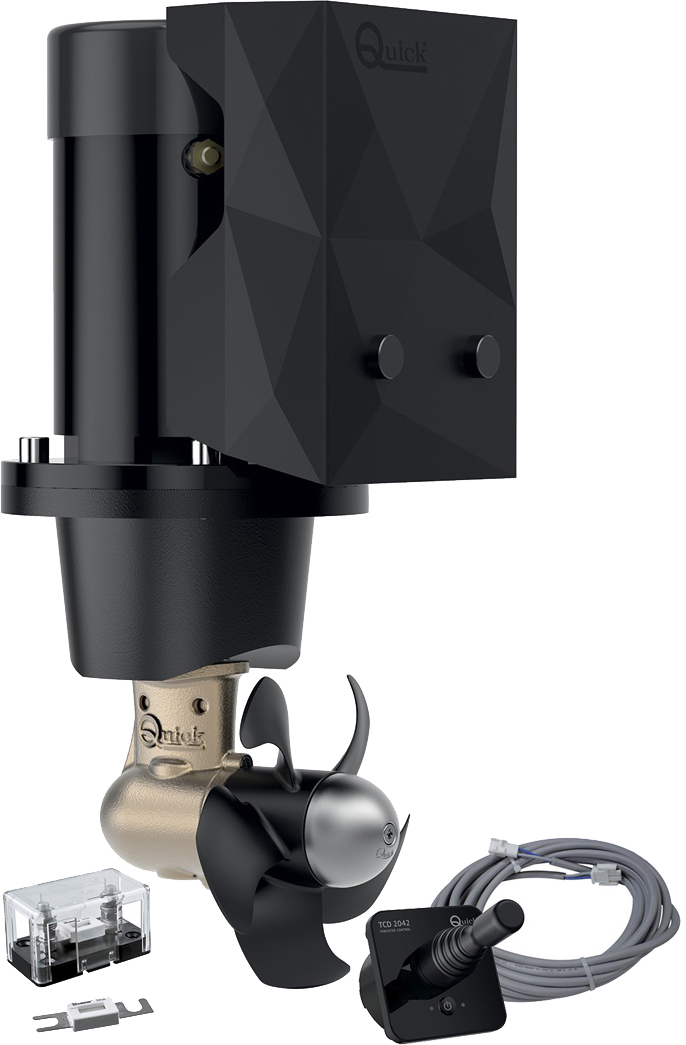 Quick BTQ 140-40 er et svært godt valg til båter fra ca 23 til 29 fot. Her får du det meste du trenger - baugpropell, joystickpanel, hovedsikring og signalkabel. Det eneste du trenger i tillegg er tunell og strømkabler.