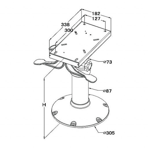 - Stolsøyle SHD1230 m/gassdemper, 300-400mm, 12" sokkel