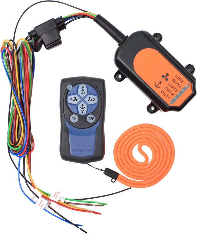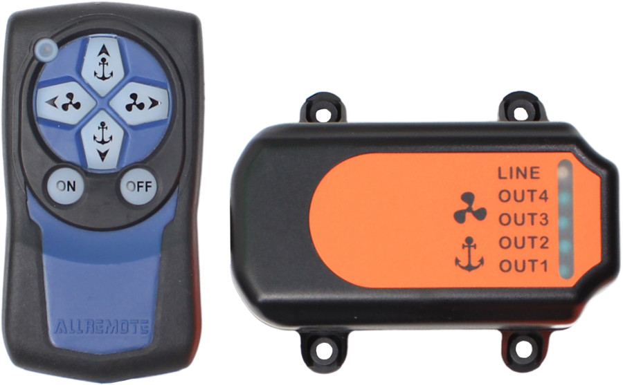 Settet består av en trådløs fjernkontroll med håndstropp og en ferdig kablet mottaker med godt merkede ledninger. Den er enkel å montere inn mot både baugpropell og ankervinsj. Fjernkontrollen leveres ferdig kodet inn mot mottakeren.